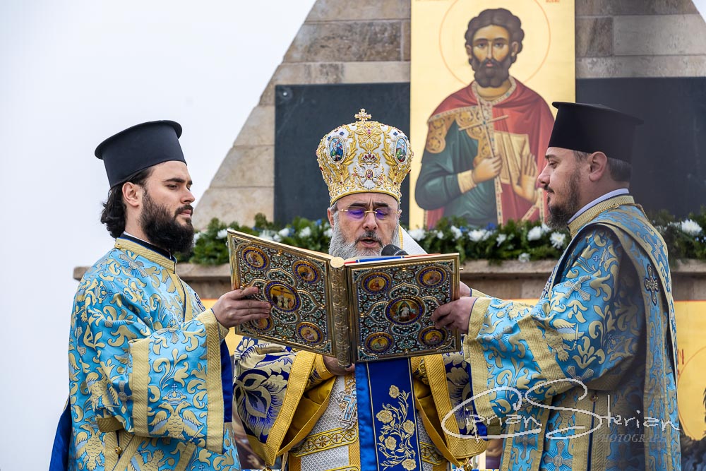 Ceremonialul religios s-a desfășurat la monumentul amplasat pe malul râului Buzău, unde au fost pregătite cinci butoaie cu apă. Înaltpreasfințitul Ciprian a săvârșit slujba de sfințire a apei, iar apa binecuvântată a fost ulterior oferită credincioșilor prezenți.
