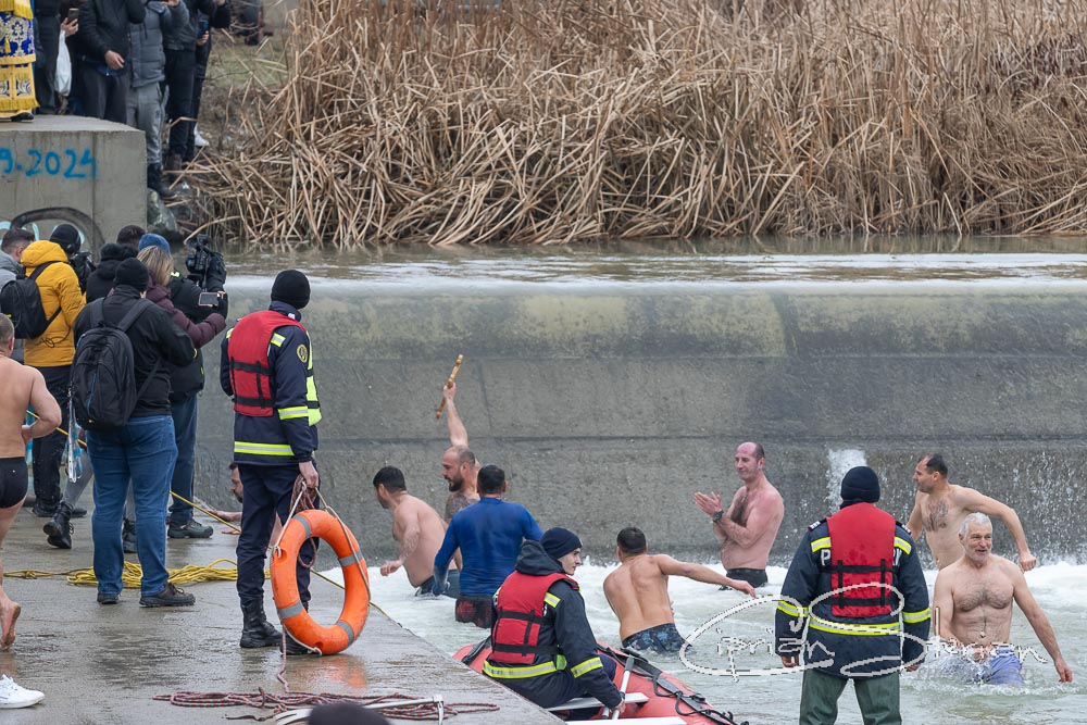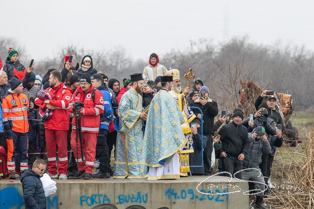 La finalul slujbei, IPS Ciprian, alături de preoții coslujitori, a eliberat în aer mai mulți porumbei albi, după care a aruncat crucea de lemn în apele râului Buzău. Treisprezece tineri s-au aruncat în apă pentru a recupera crucea, în ciuda temperaturilor scăzute.