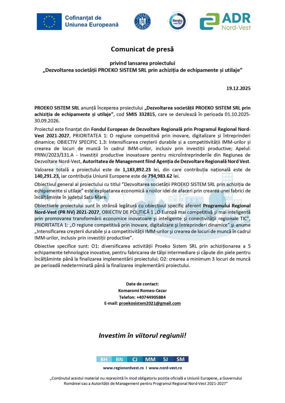 • Comunicat de presă – PROEKO SISTEM SRL 19/12/2025