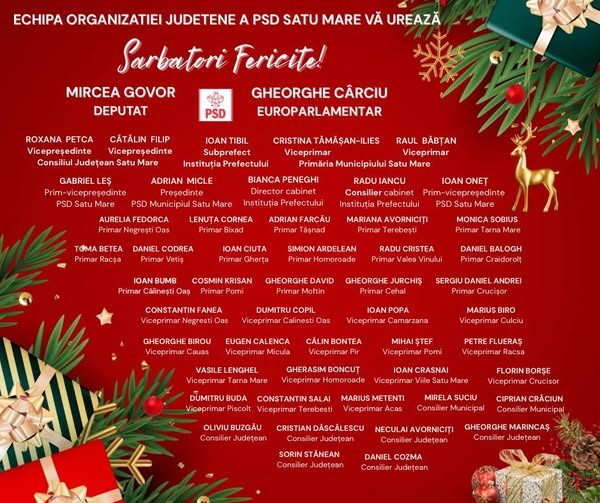 • Echipa PSD Satu Mare vă transmite Sărbători Fericite! 24/12/2025