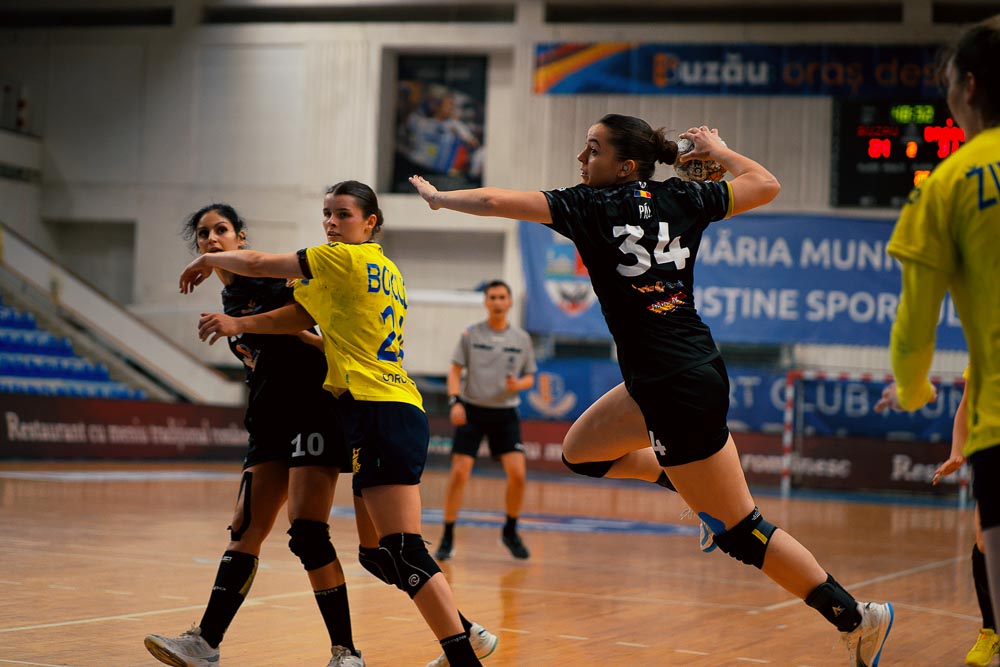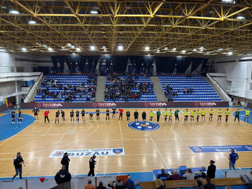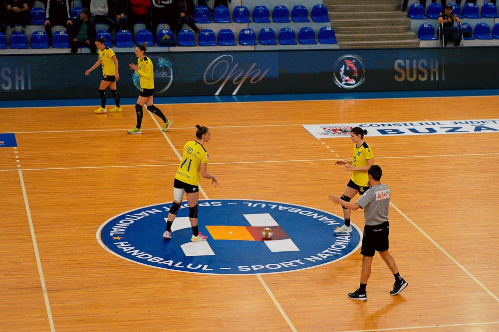 * 20-14 e scorul pauzei, iar publicul parcă, din demnitate, nici nu mai are curajul să apostrofeze pe vreuna dintre fetele Buzăului.