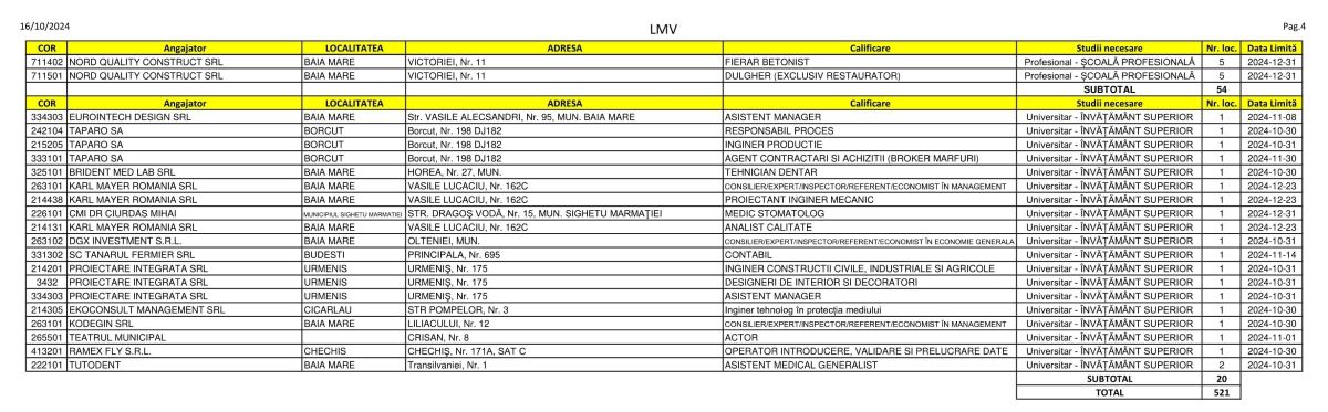 Peste 500 de locuri de muncă sunt disponibile în aceste zile pe listele AJOFM Maramureș. Se caută de la casieri, zidari și lăcătuși până la designeri de interior, ingineri și asistenți medicali. Listele cu posturile disponibile le puteți conulta mai jos.