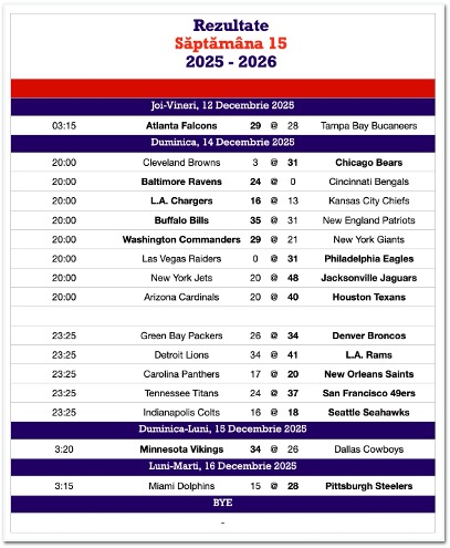 The post NFL Endzone – Săptămâna 15 în retrospectivă first appeared on Observatorul Buzoian.