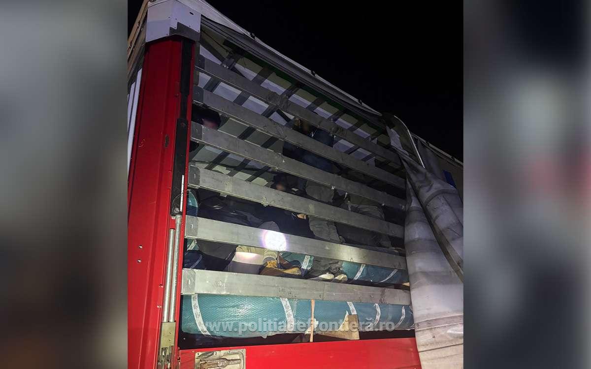 Polițiștii de frontieră din Calafat, în colaborare cu autoritățile bulgare, au depistat, azi, zece migranți care încercau să intre ilegal în România, ascunși în compartimentul de marfă al unui autocamion.